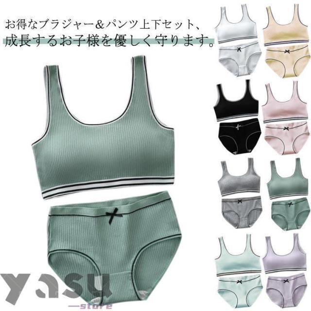 高校生 ショーツセット スポーツブラ ジュニアブラジャー シンプル 上下セット 学生 リブ ノンワイヤーブラ 英字ロゴ ジュニア向け フィットネス