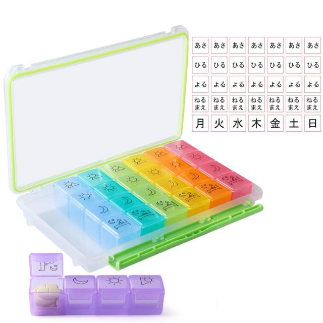 Opret ピルケース 薬ケース 防水仕様 薬入れ サプリメントケース 1週間 1日4回 携帯用 習慣薬箱 薬入れ コンパクト 曜日シール付き