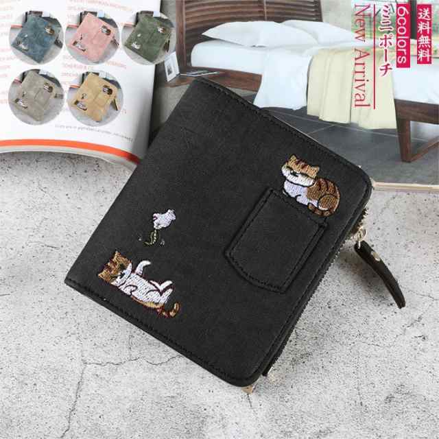 ミニ財布 二つ折り財布 ウォレット レディース財布 刺繍 サイフ おしゃれ 猫柄 可愛い カード入れ 名刺入れ 小銭入れ お札入れ 軽量