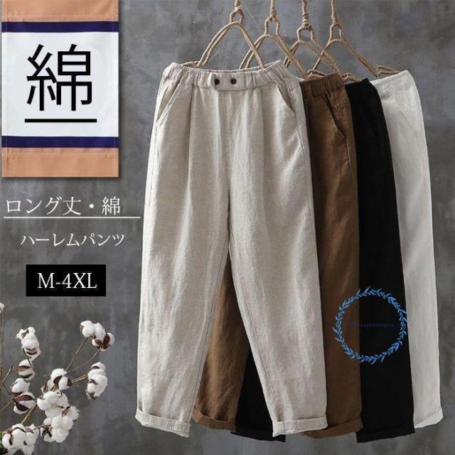 ハーレムパンツ レディース 綿 コットン ロングパンツ きれいめ パンツ おしゃれ 夏 ハイウエスト 楽ちん 無地 ボトムス 体型カバー 着痩せ 上品