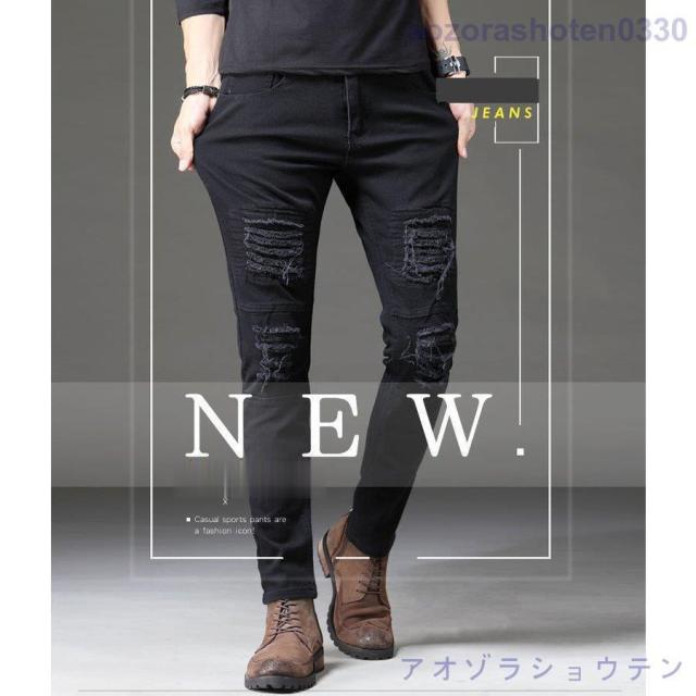 ジーパン メンズ ハイパーストレッチ スキニーパンツ ダメージ 加工 ホワイトデニム ブラックデニム ジーンズ 2021 秋冬 新作