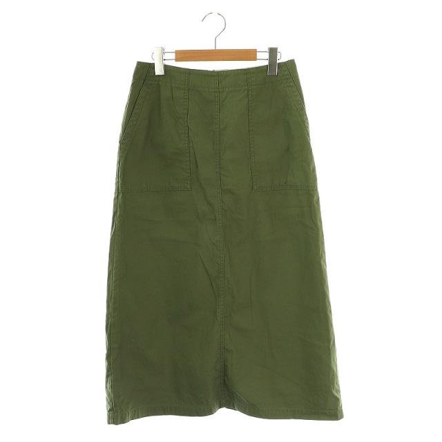 【中古】アンタイトル UNTITLED ミリタリーバックサテン Aラインスカート フレア ミモレ ロング 3 カーキ