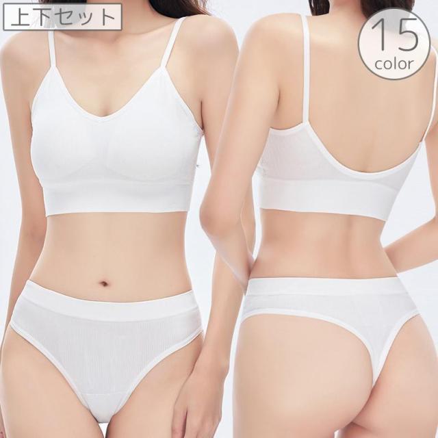 スポーツブラ ショーツ 上下セット 2点セット レディース 女性 インナー 下着 ブラジャー パンツ Tバック ナイトブラ ノンワイヤー カップ付き