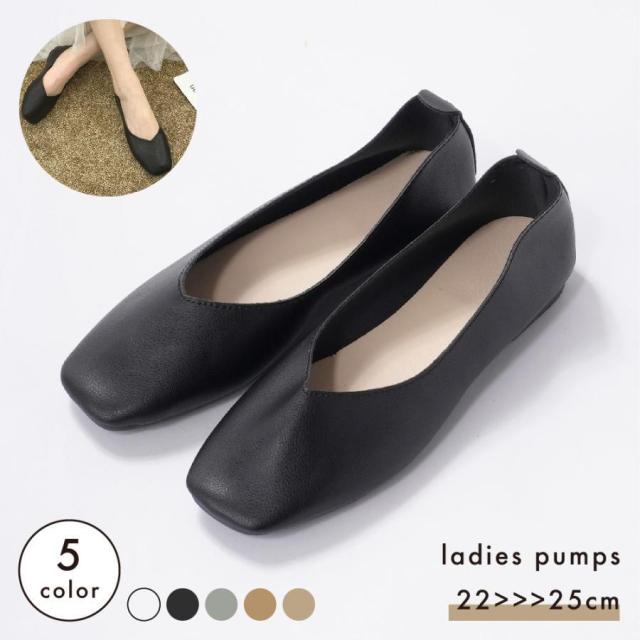パンプス 靴 ぺたんこ スクエアトゥ ローヒール フラットシューズ レディース 女性 婦人用 おしゃれ かわいい きれいめ 上品 カジュアル シンプル