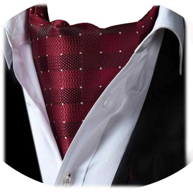 [HISDERN] RC-01 アスコットタイ メンズ シルク ネッカチーフ スカーフ ファション ペイズリー柄 人気24柄 ビジネス フォーマル (Free Size, 02 ワインレッド(チェック))