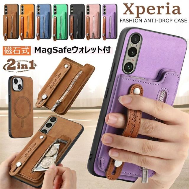 多機能Magsafeウォレット+単体ケース エクスペリア 1VII 10 5 1 VI V スマホケース マグセーフ 落下防止 ベルト付き エクスペリア10VI Xperia1VI Xperia 10 VI SO52E SOG14 A402SO XQES44 携帯ケース 磁気ポケット マグネット 小銭入れ 財布 付き オシャレ 大人 かわいい