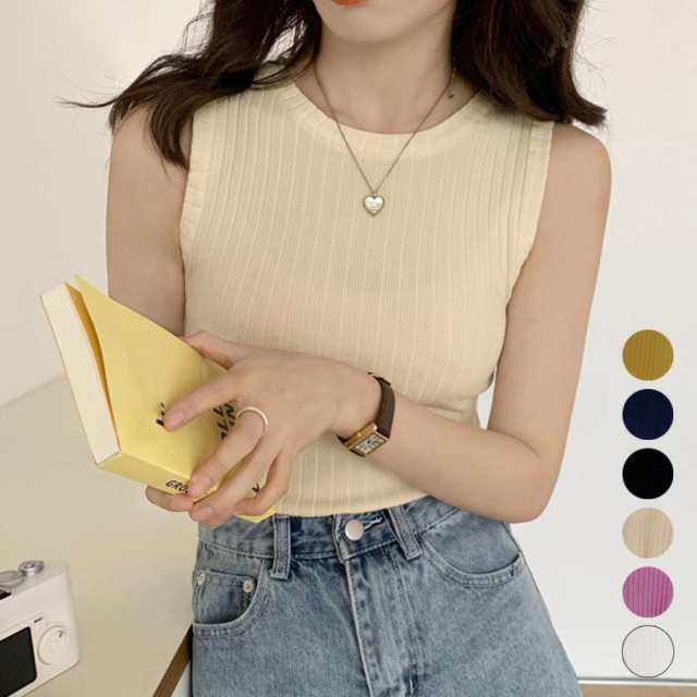ラウンドネック サマーニット 着回し 大人カジュアル 韓国 ノースリーブ ニットカットソー 無地お洒落 ニットインナー