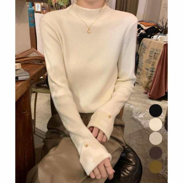 プチハイネックニットトップス 袖口ボタン【ゆうパケット】