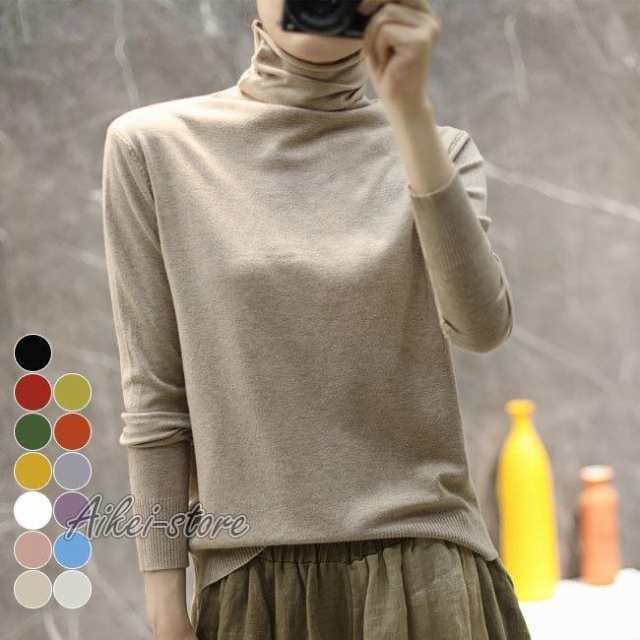 タートルネック ニットセーター レディース ニット きめ細かい ウール混 セーター オフタートル ハイネック シンプル インナー トップス