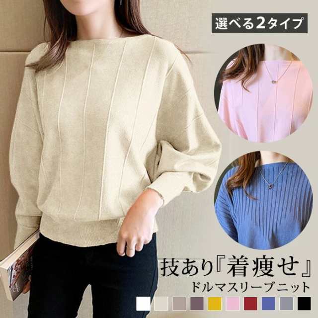 ニットトップス レディース 春 夏 黒 白 ニット セーター 長袖 無地 インナー ボートネック ゆったり ドルマン あったか 長袖ニット ベーシック カジュアル オフィスカジュアル シンプル きれいめ カラーニット 20代 30代 40代 50代 OL