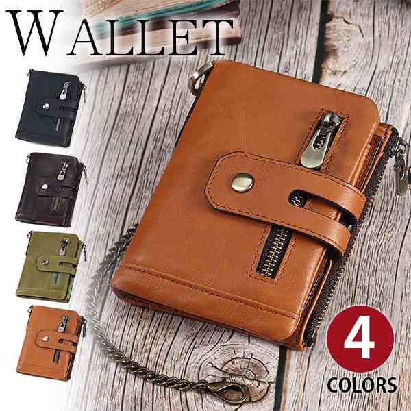 短財布 小銭入れあり カードケース 二つ折り ウォレット チェーン付き 耐久性牛革 本革 オイルレザー メンズ 男性用 札 カード12枚入れ可 クレジットカード収納 4色選 le5116 父の日ギフト クリスマス プレゼントpt