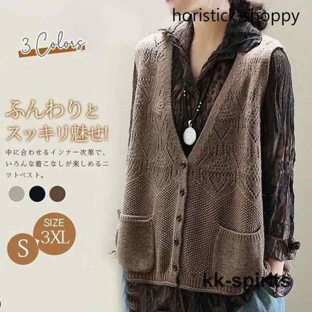 ジレ ニットベスト ニット セーター レディース 春 秋コーデ ポケット付き ニットソー vネック セーター トップス ゆったり 前開き ノースリーブ チョッキ