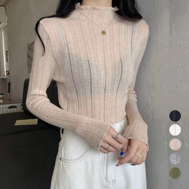 無地 着やせ インナーニットソー ボトルネック きれいめ ニットウェア透け感 春秋冬 オフィスカジュアル
