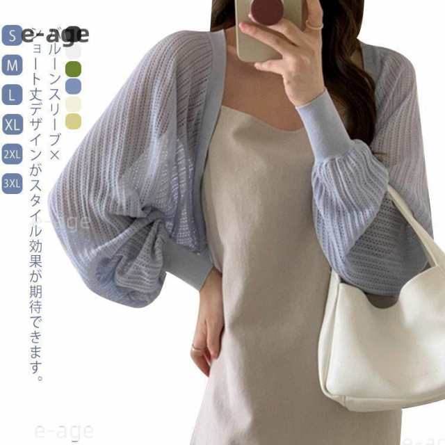 カーディガン ボレロ レディース 春 夏 トップス サマーニット ニットボレロ サマーカーディガン ショート丈 羽織り レイヤード ボリューム袖 ボリ