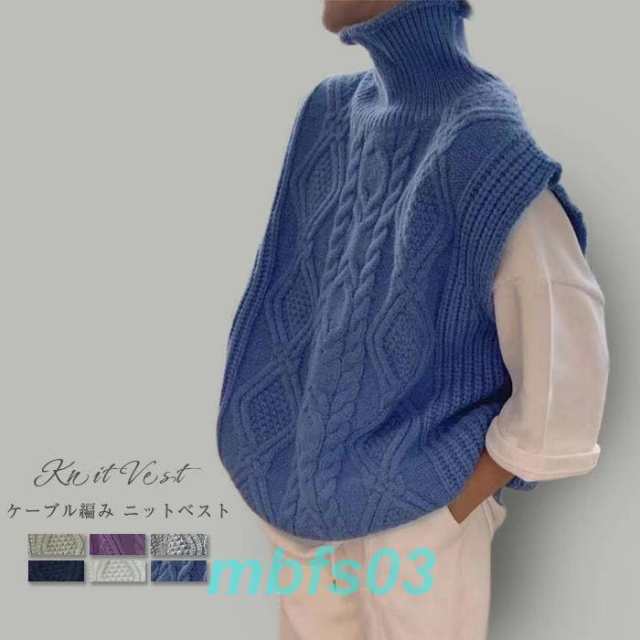 ローゲージニットのケーブル編みタートルネックベスト ニット ベスト レディース ニットベスト トップス ノースリーブ ケーブル編み 秋 冬 秋冬 30代 40代 50代