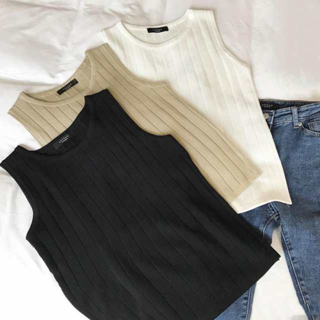 リブニット タンクトップ ニット トップス レディース 春 サマーニット 無地