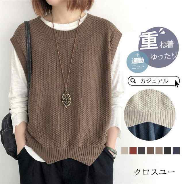 ニットベスト レディース チョッキ 春 夏 トップス 秋 冬 ノースリーブ レイヤード 重ね着 ゆったり プルオーバー ベスト ジレー セーター 秋物