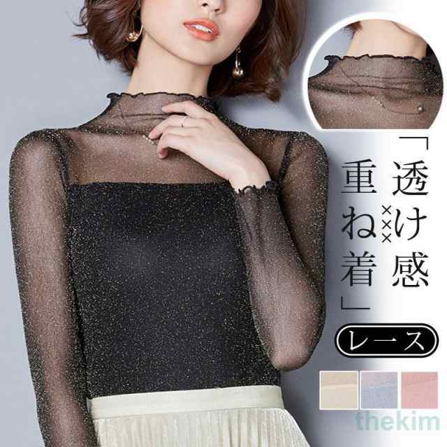 チュール シースルー トップス Tシャツ インナー タートルネック コーデ レイヤード 輝く 薄手 重ね着 カットソー 春 夏 秋 透け感 おしゃれ