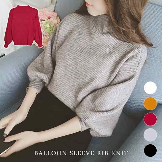 ニット レディース 春 夏 春夏 トップス 黒 白 長袖 チュニック セーター 無地 ハイネック バルーンスリーブ ドルマン ニットトップス リブニット ブラック ホワイト ピンク グレー ニットソー 大人 20代 30代 40代 OL ママ 母