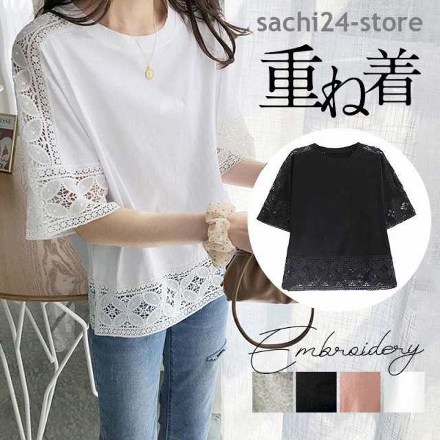 シャツ レース トップス 刺繍 tシャツ ブラウス 半袖 総レース シースルー プルオーバー レディース オシャレブラウス 五分袖 大人 通勤OL ゆったりシャツ