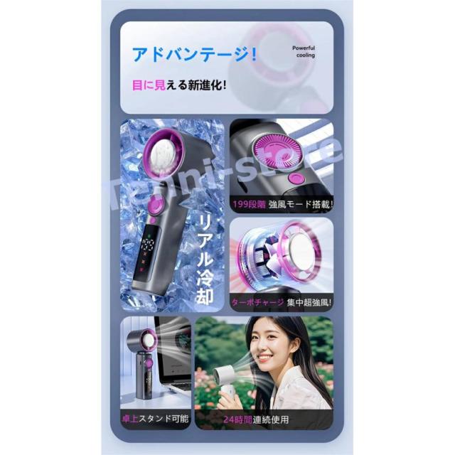 手持ち扇風機 静音 199段階 ハンディファン 扇風機 冷却プレート 1秒冷却 -16℃瞬間冷却 超大風量 USB 掛け扇風機 携帯扇風機