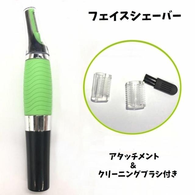 フェイスシェーバー メンズ レディース カッター トリマー 眉毛 産毛 ムダ毛処理 剃毛 顔剃り 電動式 電池式 LEDライト付き アタッチメント付き