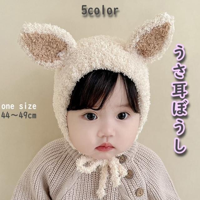 ニット帽 帽子 ベビー 赤ちゃん キッズ 子供用 女の子 男の子 ぼうし ウサギ耳 うさぎ 防寒 耳保護 暖かい キュート ふわふわ モコモコ かわい