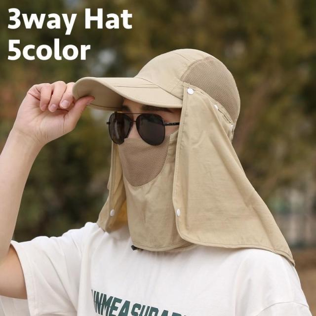 キャップ 帽子 フェイスカバー ネックカバー 3way レディース メンズ 女性 男性 ぼうし フェイスマスク 取り外し可能 日除け 紫外線対策 ネッ