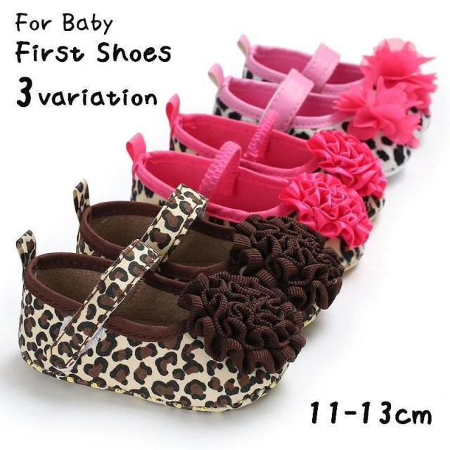 ヒョウ柄にかわいいお花モチーフ付き♪ベビー用ファーストシューズです。