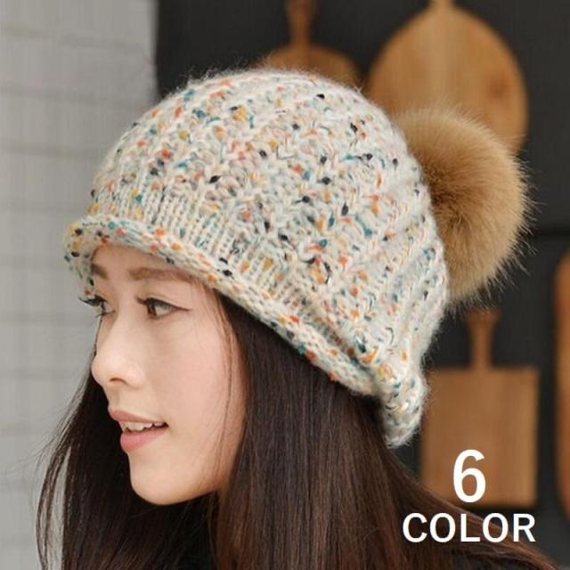 ボンボンCUTEなニット帽 帽子 ファッション小物 レディース 7カラー