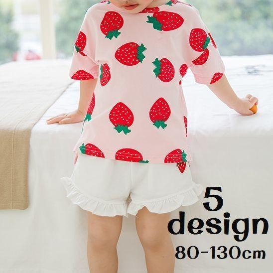 半袖Tシャツ カットソー 子供服 キッズ ベビー 男の子 女の子 ラウンドネック イチゴ レモン ヒョウ パイナップル ドット