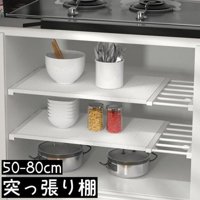 突っ張り棚 つっぱり棚 ラック 伸縮式 長さ調節可 つっぱり棒 収納家具 整理整頓 省スペース 棚下収納 シンク下収納 壁面収納 キッチン トイレ ホ