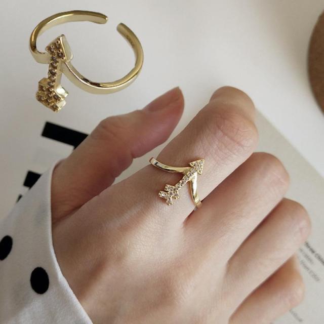 指輪 オープンリング アクセサリー レディース 女性用 アローモチーフ ラインストーン 金色 シルバー925 サイズ調整可能 開口 キラキラ おしゃれ