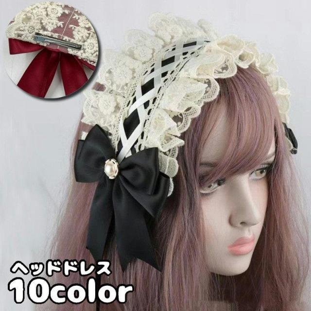 ヘッドドレス ロリータ ゴスロリ コスプレ 髪留め リボン ヘアピース クリップ留め レディース ヘアアクセサリー レース 髪飾り ヘアアレンジ おし