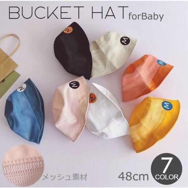 帽子 バケットハット ベビー キッズ 子ども 女の子 男の子 48cm メッシュ 通気性 日よけ 紫外線対策 UV対策 折り畳み ロゴ 英字 ワンポイ