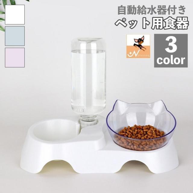 自動給水器 ペット用食器 犬用 猫用 フードボウル ウォーターボウル 水入れ ボトル 餌入れ エサ えさ ダブルボウル 食器 シンプル 便利 留守番