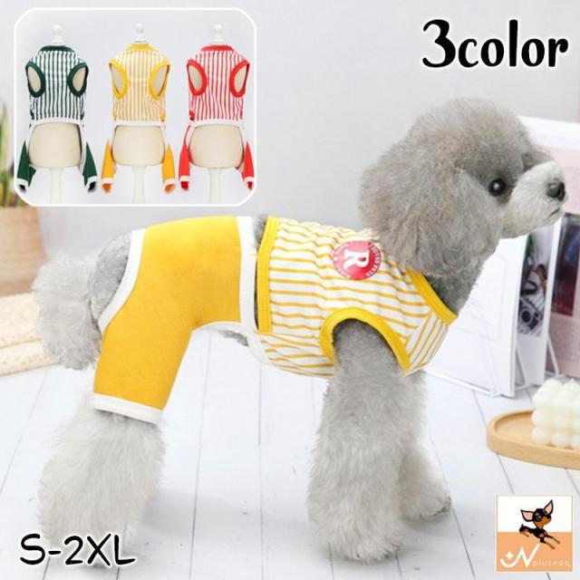 ドッグウェア カバーオール つなぎ 犬服 猫服 ペット用品 小型犬 ストライプ セパレート風 フェイクデザイン ユニフォーム風 おしゃれ かわいい カ