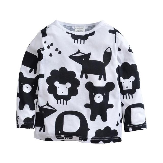 Tシャツ ロングTシャツ 子供用 キッズ 男の子 長袖 ラウンドネック 丸首 プリント クマ ライオン 象 アニマル柄 春服 秋服 冬服 カジュアル