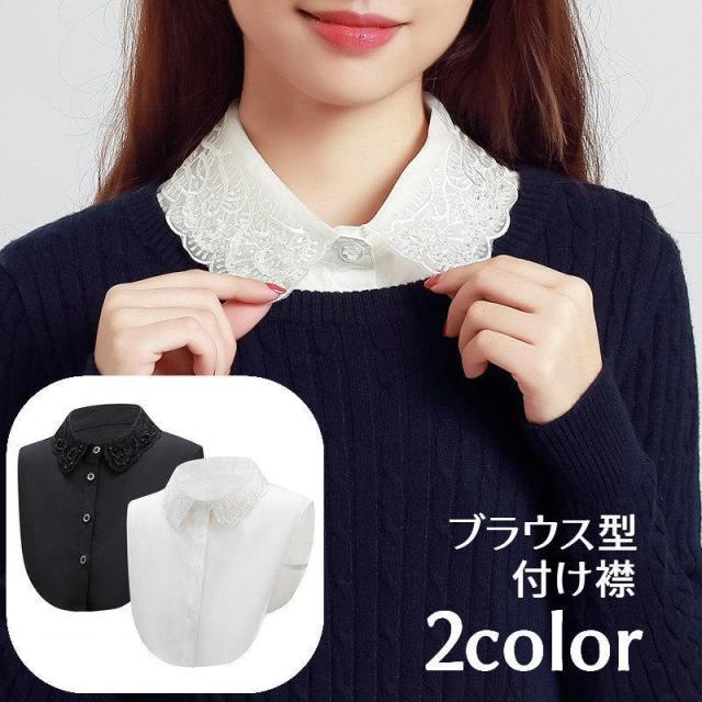 付け襟 つけ襟 レディース 女性 スタンダードカラー 角襟 オーガンジー調 刺繍 前ボタン ブラウス風デザイン シャツ型 無地 おしゃれ かわいい 上