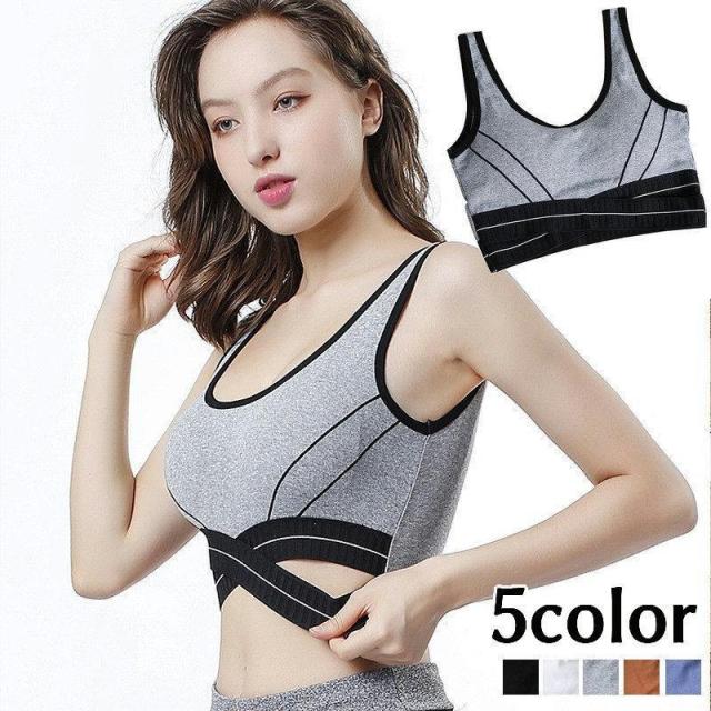 スポーツブラ ハーフトップブラ ノンワイヤーブラ スポーツウェア フィットネスウェア ブラジャー 下着 女性用 レディース 婦人 パット付き 運動 ス