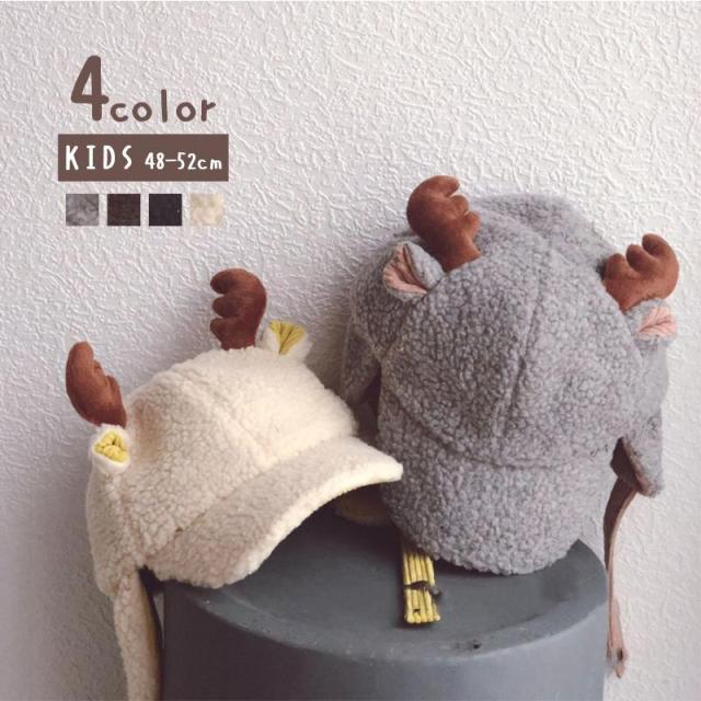 フライトキャップ キャップ 帽子 もこもこ 耳当て キッズ 子供用 ユニセックス 女の子 男の子 ファッション小物 シカ ツノ 動物 アニマル シンプ