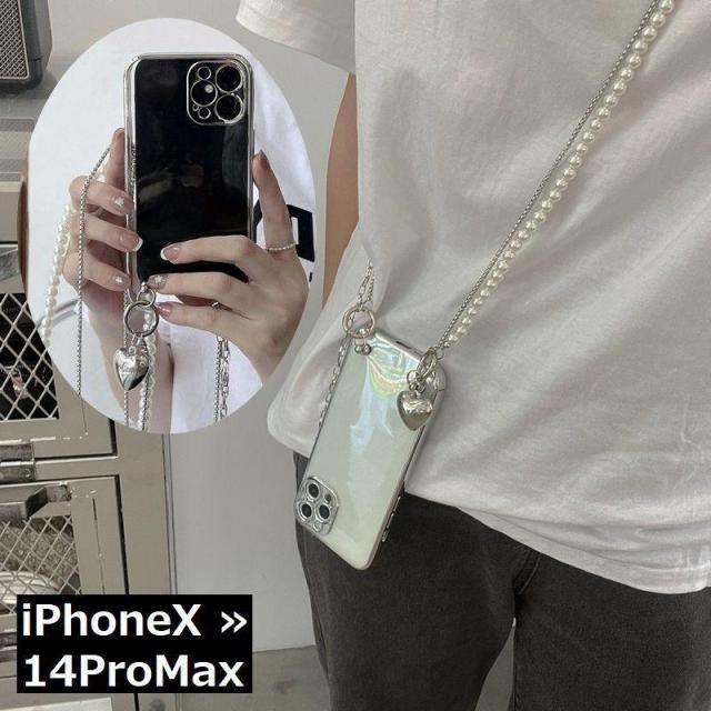 iPhone ケース カバー スマホ チェーンストラップ付 ショルダー 肩掛け 斜めがけ 軽量 耐衝撃 背面 カメラ保護 クリア