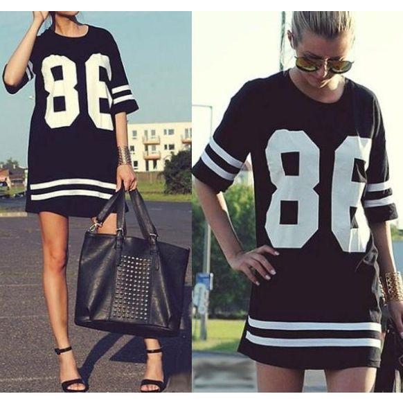 Tシャツ チュニックTシャツ 半袖Tシャツ チュニック レディース トップス ロゴ プリント 丸首 ラウンドネック 丈長め 数字 番号 86 横線 ラ