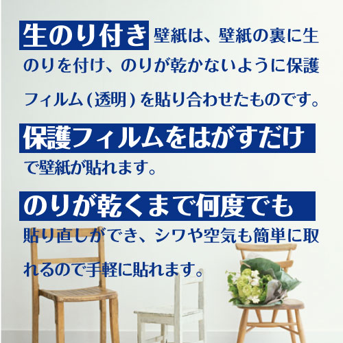 手軽に空間を刷新できる生のり付き壁紙です。