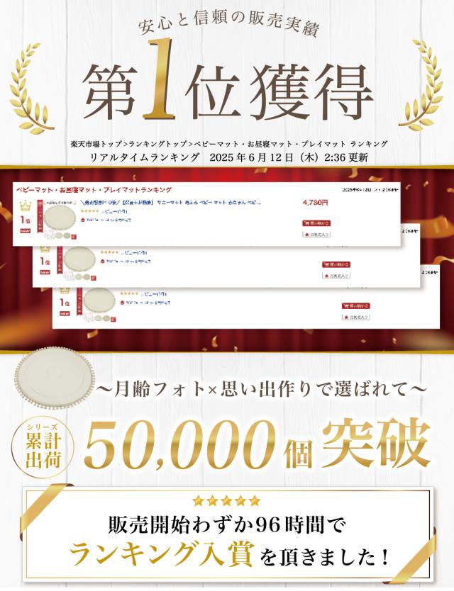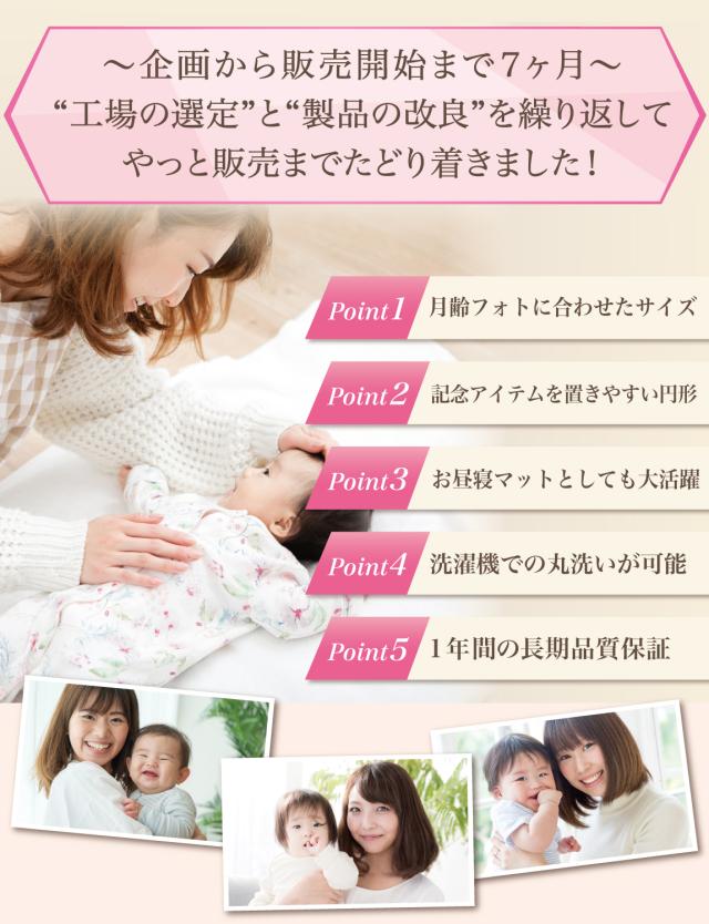 赤ちゃんの成長記録として記念写真に大人気のイブルマットとなっています。