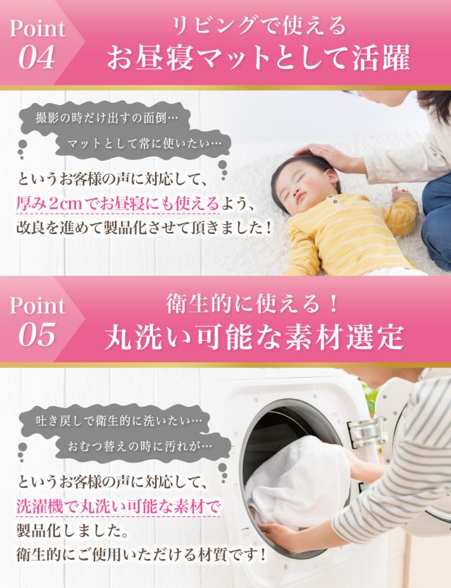 「月齢フォトの映える背景に…」「ベビーマットとしてお昼寝に使いたい…」という