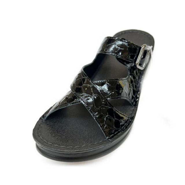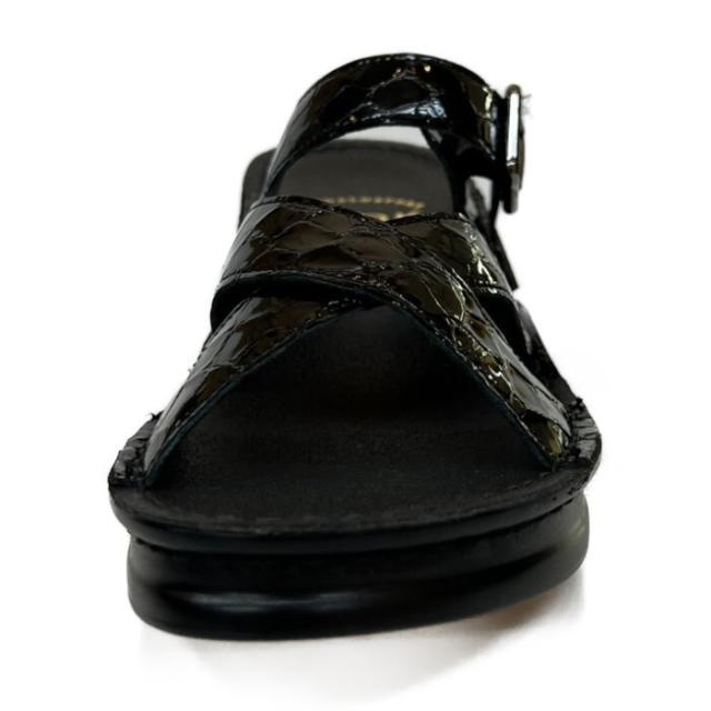本革 日本製 クロスデザインの本革シワエナメルミュールサンダル サンダル レザーサンダル 履きやすい 脱ぎやすい 歩きやすい 疲れにくい レデイース