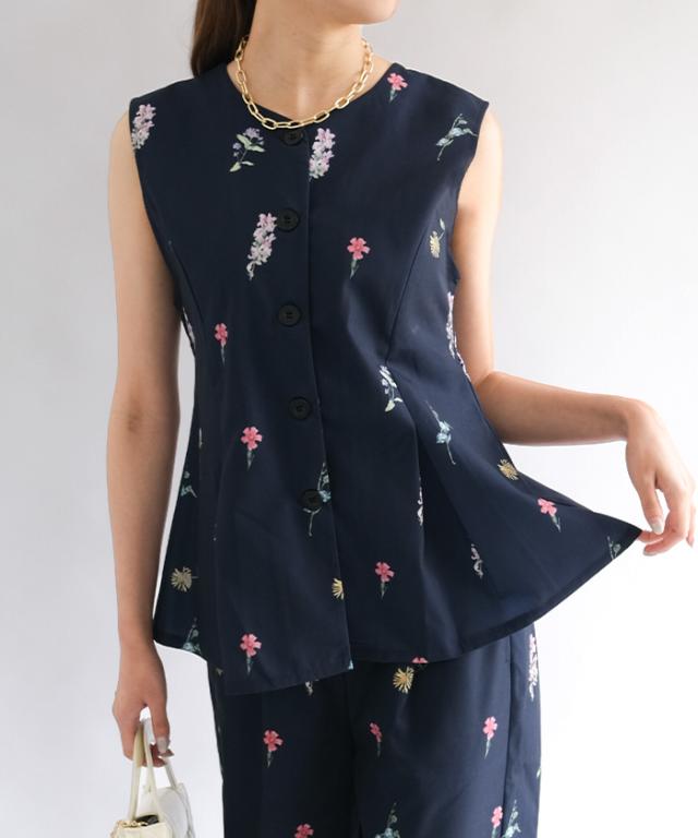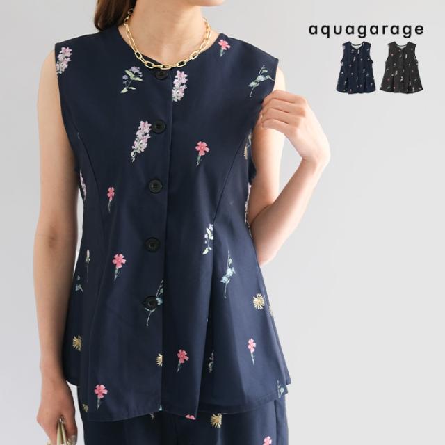 ≪ゆうメール便配送20・代引不可≫ 花柄ペプラムベスト レディース 春 夏 秋 M アクアガレージ aquagarage