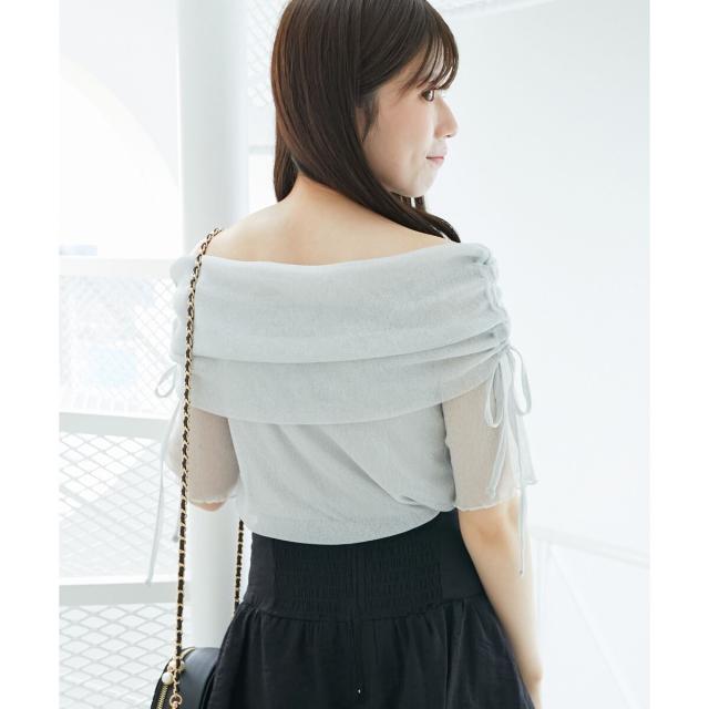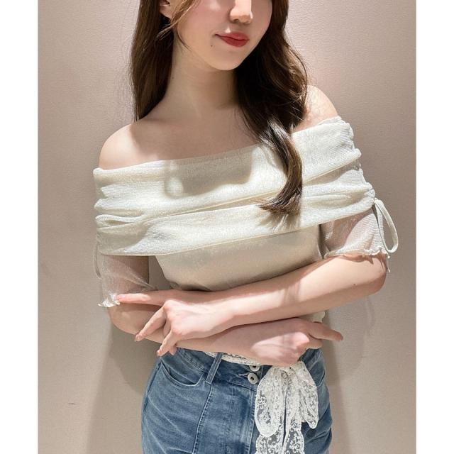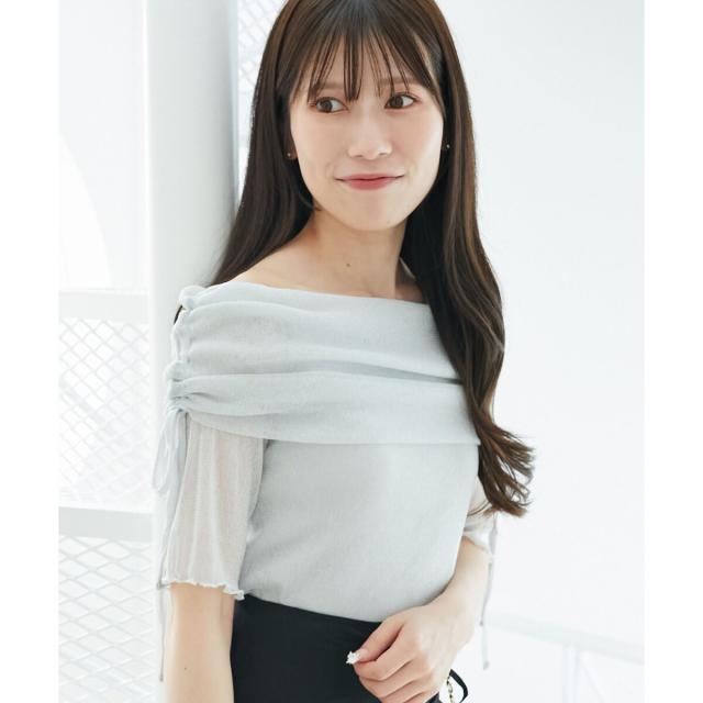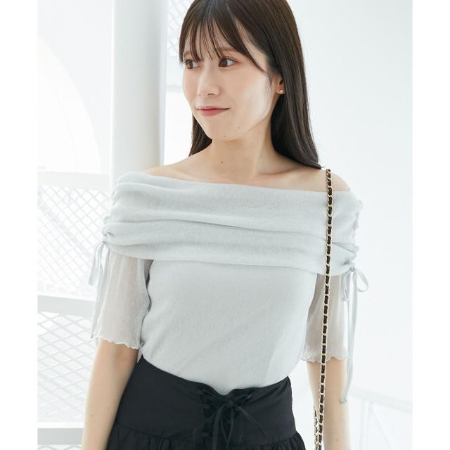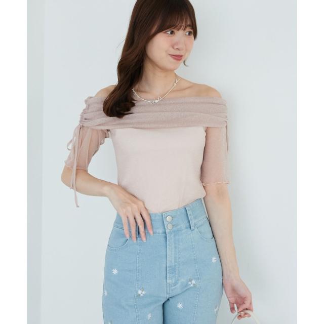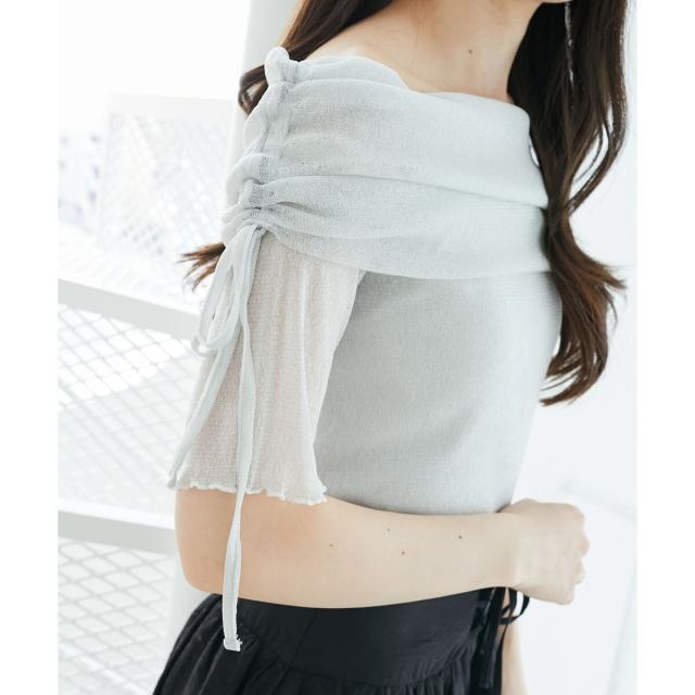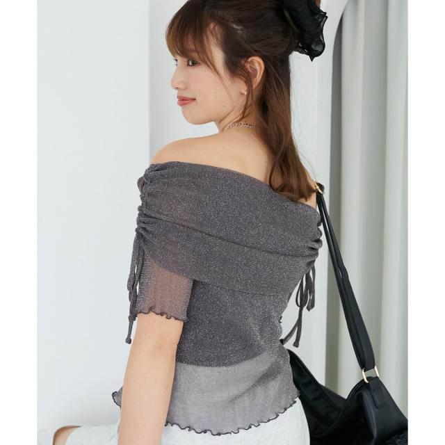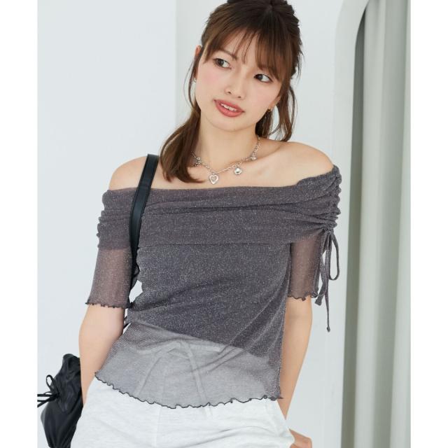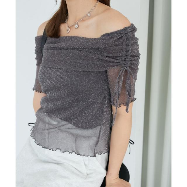 シアー&ラメがトレンドムードたっぷり!人気のオフショルチュールトップスが半袖になって登場