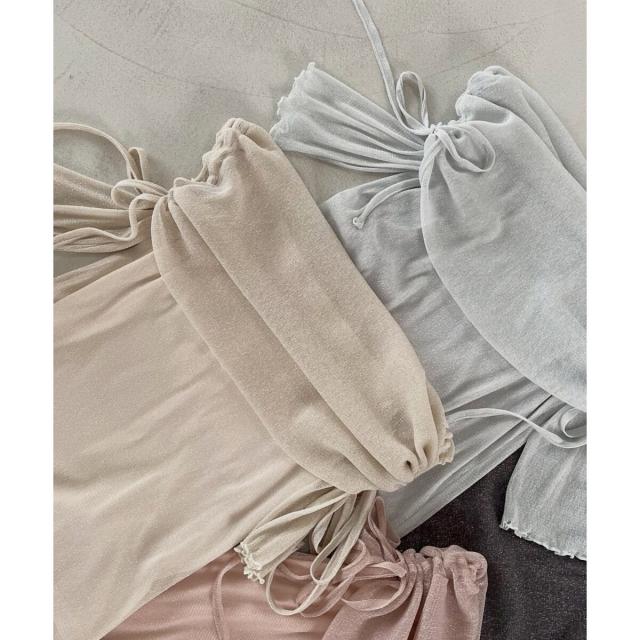 サイドのドローストリングがスタイルに変化を与え、立体感もプラス。